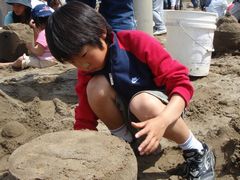 というわけで、我が家の子ども達も砂像創りに挑戦!