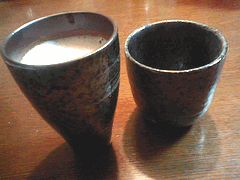 夫の焼酎カップと私のビールカップ。